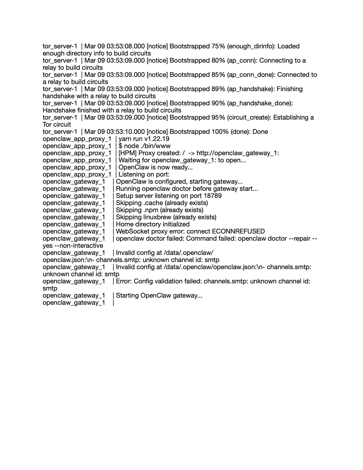 I assume those would require getting a shell into the OpenClaw container. Have you figured that out? If so, I would recommend working with an LLM to try and fix the /data/.openclaw/openclaw.json config file first. In particular, if you can find a key:value pair containing the word “smtp”, then removing whatever it is part of might get OpenClaw back up and running again. If you can find that part of the config, post it here (removing any SMTP passwords if present first), I might be able to help you edit the broken part out.